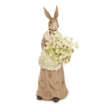 Figurka Królik ONA ogrodnik brąz sukienka koszyk kwiatów w ręku 31,5cm