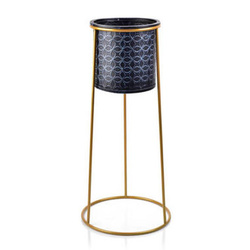 Osłonka metalowa granatowa złoty pas H17xfi30cm