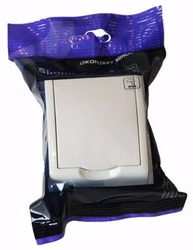 Gniazdo pojedyncze z uziem. białe +klapka AQUARIUS