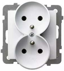Gniazdo podwójne uziemienie białe Ospel AS z ramką