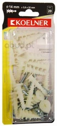 Kołek wkręcany do gipsokartonu z wkrętem 20 sztuk