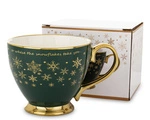 Filiżanka ceramiczna zielona 380ml złote gwiazdki, na stopce