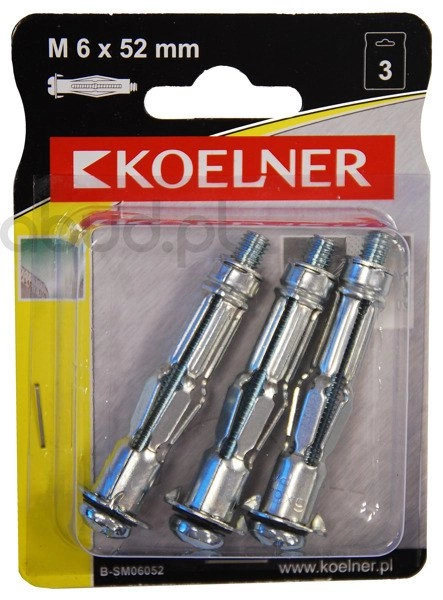 - Śruby do gipsokartonu M 6 mm długość 52 mm opakowanie 3 sztuki Koelner