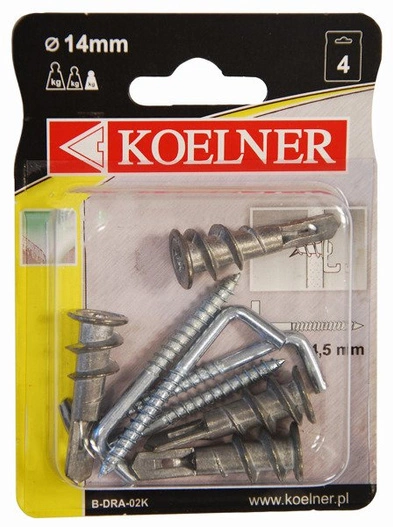 Kołki śrubowe DRA 4 sztuki doskonale sprawdzają się podczas montażu półek, szafek, elementów dekoracyjnych oraz innych konstrukcji wymagających solidnego mocowania. Idealne do zastosowań w domu, garażu, warsztacie oraz przy pracach remontowo-budowlanych.