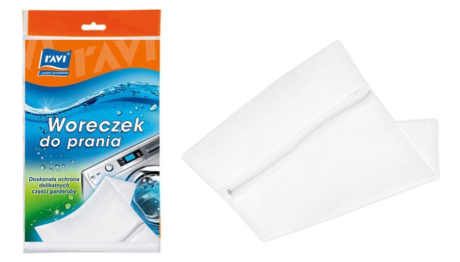 Woreczek do prania delikatnych tkanin: biustonoszy z fiszbinami, bielizny, rajstop lub firan w pralkach automatycznych. Zapobiega zużyciu odzieży podczas prania, chroni tkaninę przed zmechaceniem i deformacją, jak również zabezpiecza bęben pralki przed zniszczeniem.
