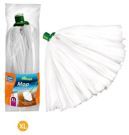 To ekonomiczny, łatwy w użyciu i wytrzymały mop z wiskozy. Bardzo dobrze chłonie wodę, usuwa nawet mocne zabrudzenia, nie pozostawiając smug. Sprawia, że sprzątanie staje się łatwe i przyjemne. W przypadku silnego zabrudzenia, można wyprać go w pralce w temperaturze 40°C.