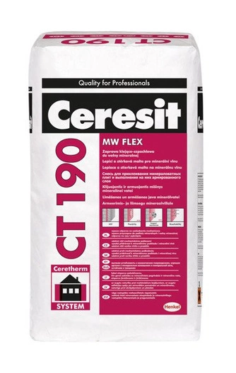 CERESIT CT 190 jest zaprawą wysoce odporną na warunki atmosferyczne, a także paroprzepuszczalną. Dzięki elastycznej formule charakteryzuje się wysoką przyczepnością do podłoży mineralnych i wełny.