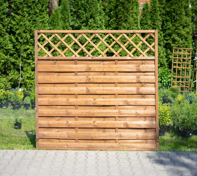 Płot Beryl 180 x 180 cm brązowy z kratką to solidne, drewniane przęsło ogrodowe, które łączy trwałość z eleganckim wyglądem. Wykonany z drewna impregnowanego ciśnieniowo, zapewnia długotrwałą ochronę przed wilgocią, grzybami i promieniowaniem słonecznym. Dekoracyjna kratka w górnej części przęsła nie tylko dodaje uroku, ale także stanowi doskonałe wsparcie dla roślin pnących, takich jak bluszcz czy powojniki. Dzięki uniwersalnym wymiarom płot świetnie sprawdzi się w ogrodzie, na działce lub tarasie, pozwalając wydzielić strefy wypoczynkowe oraz stworzyć estetyczną, naturalną barierę.