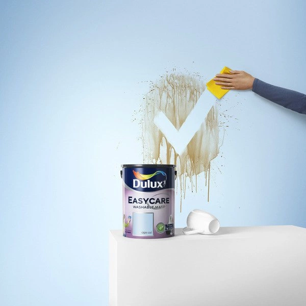 Dulux EasyCare jest plamoodporną farbą o niezwykłych hydrofobowych właściwościach. Tworzy specjalną powłokę, która odpycha wodę i wszelkie inne płynne zabrudzenia, stając się skuteczną zaporą nie pozwalającą przenikać w głąb powierzchni. Farba formuje na powierzchni matową powłokę o najwyższej odporności na plamy, a ich usuwanie staje się niezwykle proste.