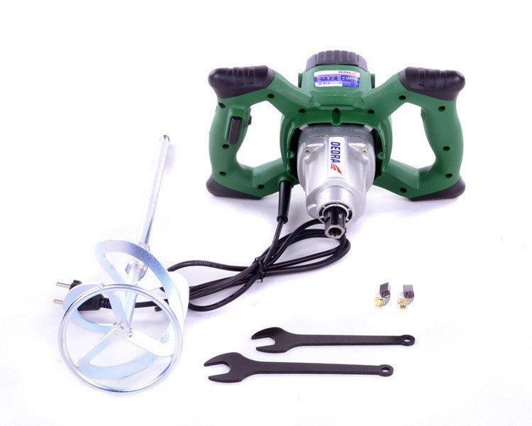Mieszarka elektryczna marki Dedra DED7928 jest dwubiegową mieszarką, której konstrukcja została przygotowana ze szczególną starannością. Urządzenie posiada szerokie zastosowanie, przede wszystkim w budownictwie i przy pracach remontowo-wykończeniowych. Jest wspaniałym rozwiązaniem przy mieszaniu farb, tynków, klejów, gipsów, zapraw tynkarskich, wapiennych, cementowych, żywic epoksydowych, chemikaliów i wielu innych. Mieszarka wyposażona została w elektroniczny regulator obrotów, który wmontowano w rękojeść. Umożliwia to łatwy dobór prędkości, która jest właściwa dla poszczególnych materiałów. Dodatkowo, zadbano by kształt rękojeści wpływał na komfort pracy poprzez pewne oburęczne trzymanie urządzenia. DED7982 posiada możliwość zamocowania różnego rodzaju końcówek mieszających z gwintem zewnętrznym M14.