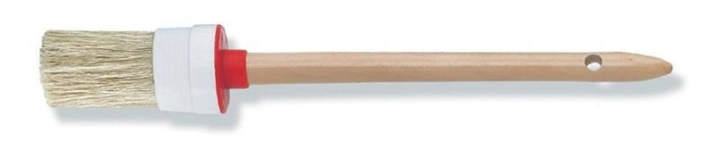 Okrągły pędzel z wysokiej jakości syntetyczną szczeciną o stożkowatym kształcie, zabezpieczonej osłonką z tworzywa. Rozwarstwienie na końcu szczeciny odpowiada za jednorodny transfer farby i bardzo dokładne wykończenie powierzchni. Łatwo go utrzymać w czystości, jest wytrzymały i nie pęcznieje podczas stosowania z farbami i lakierami na bazie wody.