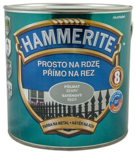 Farba Hammerite na rdzę 2,5l Półmat szary idealnie sprawdzi się do malowania ogrodzeń, balustrad, bram, konstrukcji stalowych, drzwi, elementów maszyn i innych powierzchni metalowych wymagających skutecznej ochrony przed rdzą i estetycznego wykończenia.
