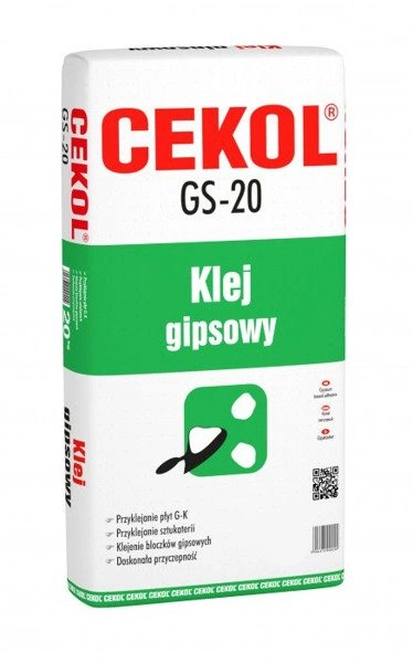 Klej gipsowy Cekol GS-20 20kg to profesjonalna sucha mieszanka przeznaczona do mocowania płyt gipsowo-kartonowych oraz płyt zespolonych z izolacją cieplną lub akustyczną. Produkt sprawdzi się również przy przyklejaniu elementów gipsowych, takich jak sztukateria, do podłoży mineralnych: betonu, cegły, gazobetonu czy bloczków gipsowych. Dzięki zastosowaniu syntetycznego gipsu, wypełniaczy mineralnych oraz dodatków modyfikujących, klej cechuje się doskonałą przyczepnością, wysoką wytrzymałością mechaniczną oraz łatwością przygotowania i nakładania. Jest nietoksyczny, ekologiczny i przeznaczony do stosowania wewnątrz pomieszczeń w suchych warunkach, gwarantując trwały i bezpieczny montaż.