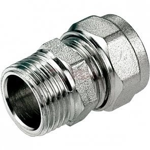 PEX złączka (gwint z.) 16 1/2" – trwałe i szczelne połączenie do instalacji wodnych i grzewczych, wykonana z niklowanego mosiądzu.