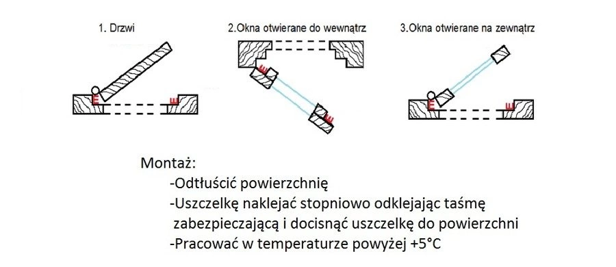 - Po przyklejeniu dociśnij uszczelkę na całej długości, aby zapewnić trwałe mocowanie
