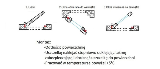 - Przed montażem dokładnie oczyść i osusz powierzchnię, do której będzie przyklejana uszczelka.