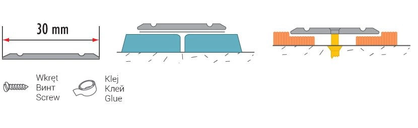 Listwa ochronna płaska 90cm Srebrna 30mm Cezar idealnie sprawdza się w wykańczaniu połączeń podłóg w mieszkaniach, biurach, sklepach czy obiektach użyteczności publicznej. Stosowana do paneli, płytek ceramicznych i wykładzin, skutecznie zabezpiecza brzegi i podnosi estetykę każdego wnętrza.
