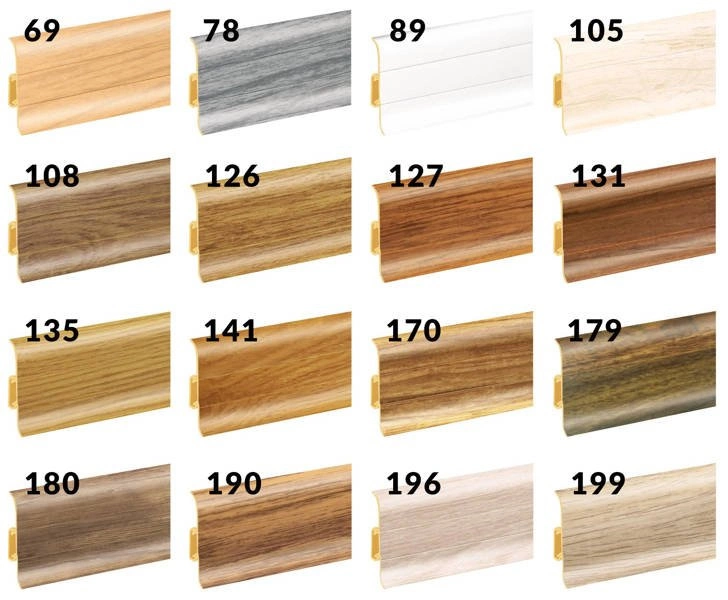 - Rodzaje: zakończenie prawe, zakończenie lewe, narożnik wewnętrzny, narożnik zewnętrzny, łącznik do listwy