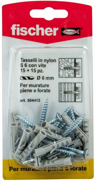 Kołki rozporowe i wkręty Fischer S 6 VK 15 sztuk