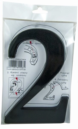 Cyfra 2 czarna o wysokości 19 cm wykonana z lekkiego, a zarazem wytrzymałego tworzywa to doskonałe rozwiązanie do oznaczania numerów domów, mieszkań czy biur. Dzięki precyzyjnemu wykonaniu oraz uniwersalnemu kolorowi, znak jest doskonale widoczny zarówno na jasnych, jak i ciemnych powierzchniach. Produkt zapewnia trwałość i estetyczny wygląd przez długi czas, a jego lekka konstrukcja ułatwia szybki montaż na drzwiach, ścianach czy ogrodzeniach. To praktyczny wybór, który podnosi czytelność i bezpieczeństwo numeracji budynków.