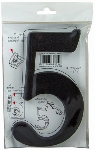 Cyfra 5 czarna o wysokości około 19 cm wykonana z lekkiego, a zarazem trwałego tworzywa to praktyczne i estetyczne rozwiązanie do oznaczenia domu, mieszkania czy biura. Dzięki kompaktowym wymiarom i niewielkiej wadze montaż jest szybki i prosty, co pozwala na samodzielne zamocowanie bez potrzeby specjalistycznych narzędzi. Ciemny kolor zapewnia dobrą widoczność na różnych powierzchniach, a solidne wykonanie gwarantuje odporność na codzienne użytkowanie.