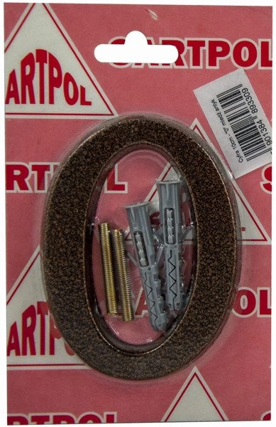 Cyfra "0" do zamontowania na drzwiach lub ścianie, która może posłużyć na przykład do oznaczenia numeru domu. Wykonana solidnie i sprzedawana z akcesoriami niezbędnymi do montażu.