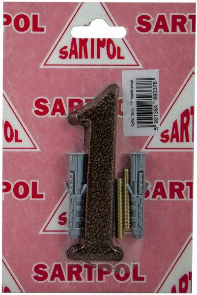 Cyfra "1" do zamontowania na drzwiach lub ścianie, która może posłużyć na przykład do oznaczenia numeru domu. Wykonana solidnie i sprzedawana z akcesoriami niezbędnymi do montażu.