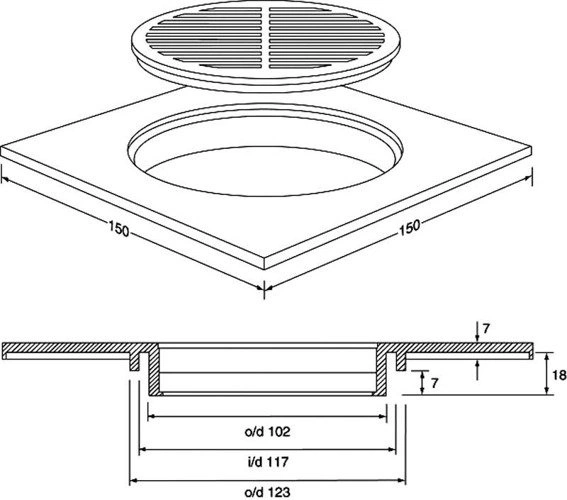 - Standardowy rozmiar 150x150 mm – łatwy montaż do większości wpustów podłogowych.