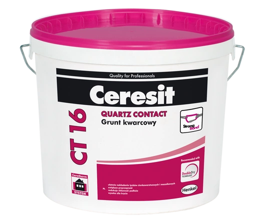 CERESIT CT 16 ułatwia nakładanie cienkowarstwowych tynków oraz przecierek stosowanych na zewnątrz i wewnątrz budynków. Jest zalecany do gruntowania warstwy zbrojonej siatką przy ocieplaniu budynków metodą lekką mokrą w systemach ociepleń CERESIT CERETHERM oraz do tradycyjnych tynków. Preparatem CT 16 można też pokrywać powierzchnie płyt wiórowych, gipsowo-kartonowych, tynków gipsowych, wszelkich betonów i mocnych powłok malarskich.