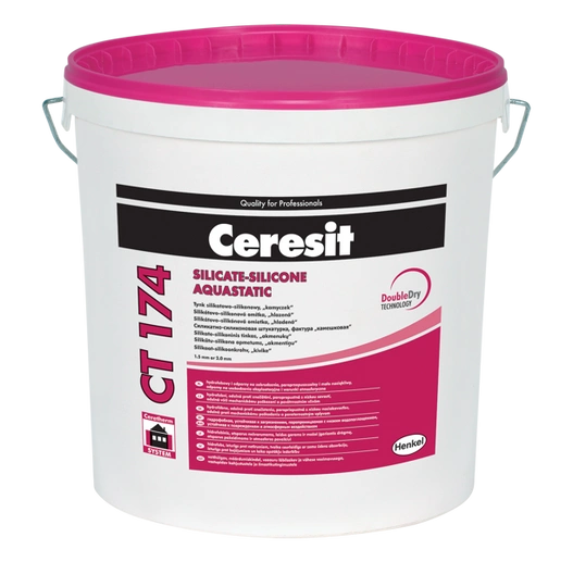 Tynk CERESIT CT 174 służy jako wykonania wyprawy elewacyjnej w bezspoinowych systemach CERESIT CERETHERM ocieplania ścian zewnętrznych budynków (BSO) z zastosowaniem płyt styropianowych oraz wełny mineralnej. Cienkowarstwowa wyprawa tynkarska może być wykonana na podłożach betonowych, tradycyjnych tynkach, podłożach gipsowych oraz na płytach wiórowych, gipsowo-kartonowych.