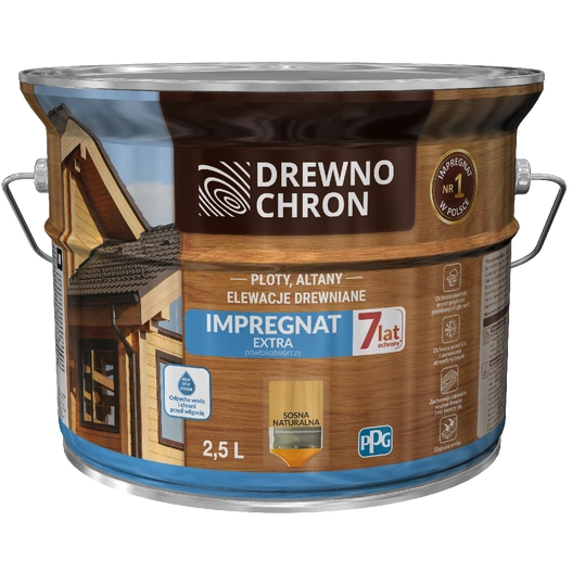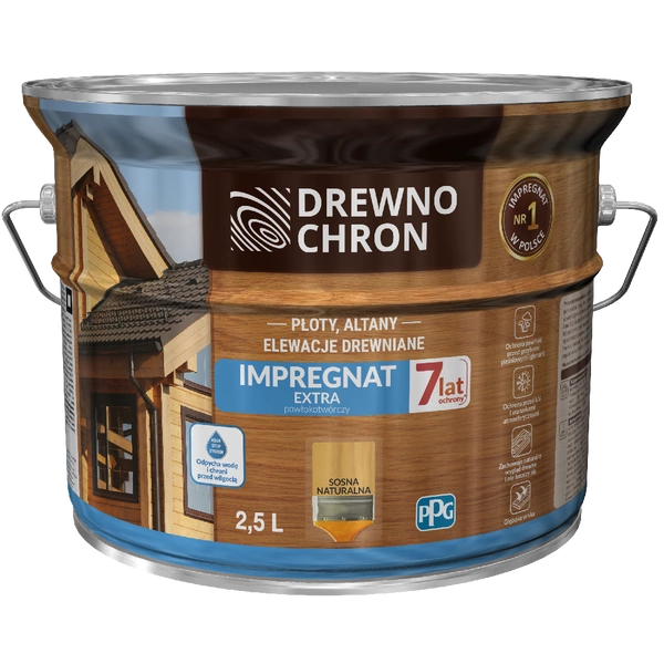 Drewnochron Extra do drewna 2,5L Sosna doskonale sprawdza się do malowania drzwi, okien, mebli ogrodowych, boazerii zewnętrznych, altanek, domków letniskowych, płotów oraz konstrukcji stropów i dachów. Można go również stosować wewnątrz budynków, np. na strychach i poddaszach, które nie są przeznaczone na stały pobyt ludzi. Idealny do zabezpieczania surowego oraz wcześniej malowanego drewna.