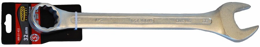 Klucz oczkowo-płaski 32mm MODECO doskonale sprawdza się podczas prac montażowych, napraw mechanicznych, serwisowania maszyn i pojazdów, a także w budownictwie i branży instalacyjnej. Idealny do odkręcania i dokręcania dużych śrub i nakrętek w trudno dostępnych miejscach.