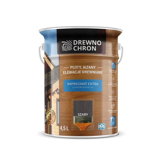 Drewnochron Extra do drewna 4,5L Szary doskonale nadaje się do zabezpieczania i dekorowania drzwi, okien, mebli ogrodowych, boazerii zewnętrznych, altan, domków letniskowych, płotów, a także konstrukcji stropów i dachów. Może być stosowany także wewnątrz pomieszczeń nieprzeznaczonych na stały pobyt ludzi, takich jak strychy czy poddasza.