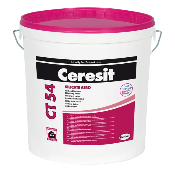 Farba silikatowa Ceresit CT 54 przeznaczona jest do malowania elewacji, ścian i sufitów w budynkach mieszkalnych, użyteczności publicznej oraz obiektach przemysłowych. Doskonała do stosowania na betonie, tynkach cementowych, cementowo-wapiennych i wapiennych, a także na tynkach mineralnych oraz w systemach ociepleń Ceresit Ceretherm. Idealna do nowych tynków i renowacji powierzchni z przebarwieniami lub wykwitami.