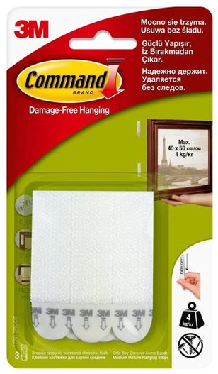 Rzepy dedykowane do wieszania obrazów, przygotowane w formie wygodnych w użyciu pasków. Nie tylko łatwo je zamontować i usunąć, ale też nie niszczą powierzchni. Pozwalają na łatwe zamocowanie lekkich obrazów (do 4 kg).