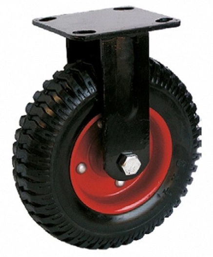 Producent wyposażył koło w łożysko kulkowe, stalową felgę i bieżnik pełny z gumy.