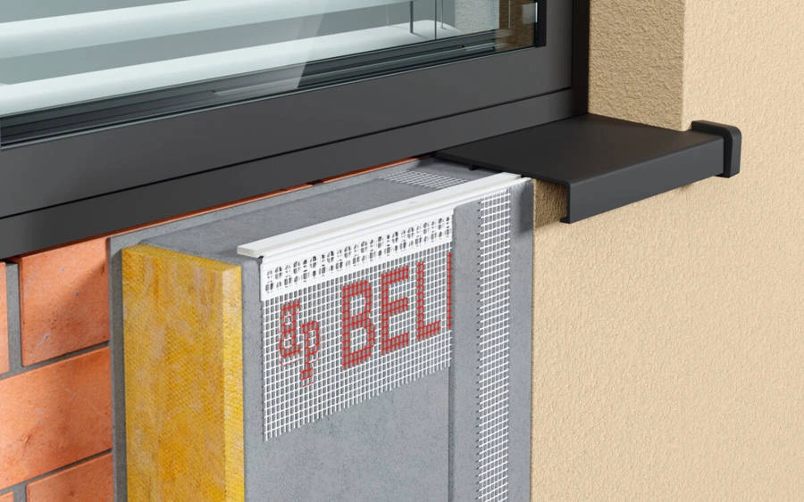 Listwa startowa BP20 zaopatrzona jest specjalną dylatacyjną piankę klejącą oraz w siatkę z włókna szklanego. Montaż listwy polega na usunięciu ochronnej folii z pianki dylatacyjnej. Następnie należy przykleić listwę pod parapetem – uprzednio oczyszczając z kurzu, brudu i oleju wewnętrzną powierzchnię parapetu. Kolejny krok to zatopienie siatki szklanej zintegrowanej z listwą BP20 i przykrycie jej „na zakład od góry” zbrojącą siatką elewacyjną. Wklejenie listwy BP20 i naklejenie siatki elewacyjnej powinno odbywać w jednej operacji klejenia.