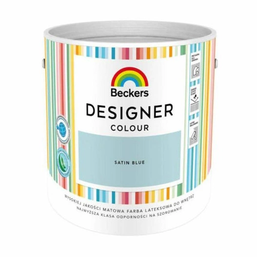 Lateksowa farba Beckers Designer przeznaczona do malowania ścian i sufitów. Jest to farba wodorozcieńczalna o wyrazistym, trwałym kolorze i matowym wykończeniu. Struktura farby przygotowana została w taki sposób by tworzyć powłokę odporną na mycie wodą z dodatkiem detergentu. Posiada dobre parametry krycia i trwały kolor. W czasie nanoszenia i schnięcia wydziela nieznaczny zapach, nie chlapie w trakcie aplikacji, pond to łatwo się ją rozprowadza na powierzchni.