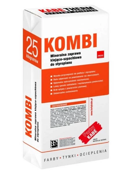 Klej uniwersalny do styropianu Kombi Kabe doskonale sprawdzi się podczas montażu płyt styropianowych w systemach ociepleń budynków, wykonywania warstw zbrojonych z siatką z włókien szklanych oraz wyrównywania i wygładzania powierzchni mineralnych przed nałożeniem farb lub tynków cienkowarstwowych. Idealny do stosowania zarówno na zewnątrz, jak i wewnątrz budynków, w nowych realizacjach i podczas renowacji.