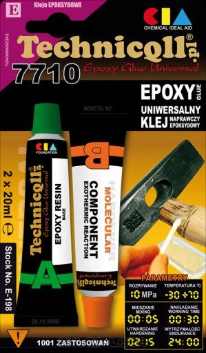 Klej epoksydowy 2x20 ml Technicqll to dwuskładnikowy produkt o wyjątkowo mocnych właściwościach wiążących. Przeznaczony jest do trwałego łączenia szkła, ceramiki, porcelany, kamienia, marmuru, cegły, tynku, betonu, drewna, metali (w tym aluminium, żelaza, stali nierdzewnej, metali kolorowych) oraz tworzyw sztucznych takich jak PCV, bakelit czy plexi (z wyłączeniem polietylenu i polipropylenu). Idealny do uzupełniania ubytków i naprawy elementów narażonych na działanie czynników chemicznych, atmosferycznych i wysokich temperatur. Spoina jest odporna na temperatury od -30°C do +70°C oraz może być malowana po utwardzeniu, co pozwala na estetyczne wykończenie każdej naprawy.
