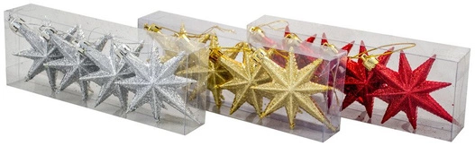 - Piękne, bardzo wyraziste bombki w kształcie gwiazd.