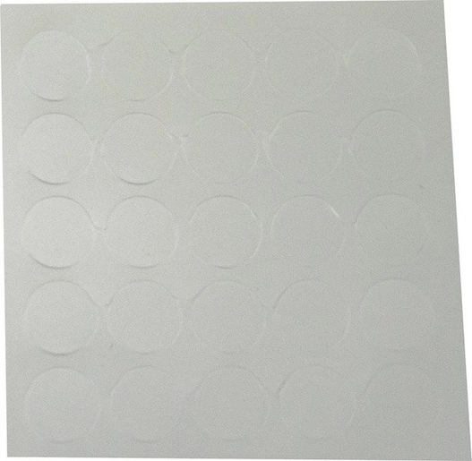 Wygodna zaślepka samoprzylepna, która pozwoli zamaskować drobne otwory czy niedoskonałości na powierzchni mebli lub listew. Arkusz zawiera 25 zaślepek o średnicy około 1,2 cm.