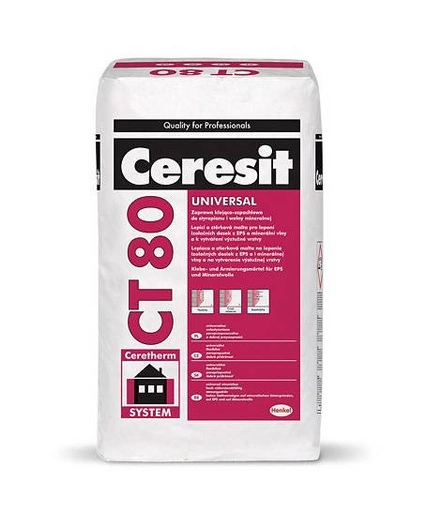 Zaprawa szpachlowo-klejąca CT80 doskonale nadaje się do mocowania płyt styropianowych, XPS oraz wełny mineralnej na elewacjach budynków. Produkt idealny do wykonywania warstw zbrojonych siatką oraz cienkowarstwowych wypraw szpachlowych w systemach ociepleń metodą lekką-mokrą, zarówno na obiektach nowych, jak i podczas renowacji.