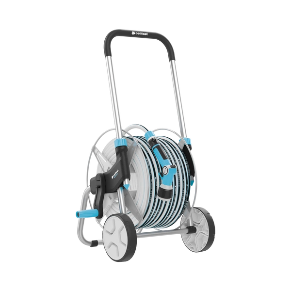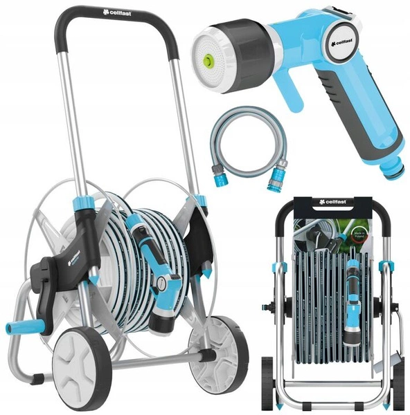 - Wytrzymały wózek – wygodne i bezpieczne przechowywanie oraz transport węża.