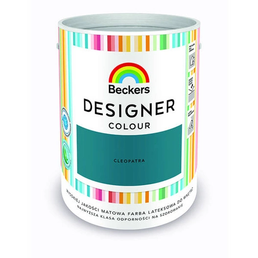 Lateksowa farba Beckers Designer przeznaczona do malowania ścian i sufitów. Jest to farba wodorozcieńczalna o wyrazistym, trwałym kolorze i matowym wykończeniu. Struktura farby przygotowana została w taki sposób by tworzyć powłokę odporną na mycie wodą z dodatkiem detergentu. Posiada dobre parametry krycia i trwały kolor. W czasie nanoszenia i schnięcia wydziela nieznaczny zapach, nie chlapie w trakcie aplikacji, pond to łatwo się ją rozprowadza na powierzchni.