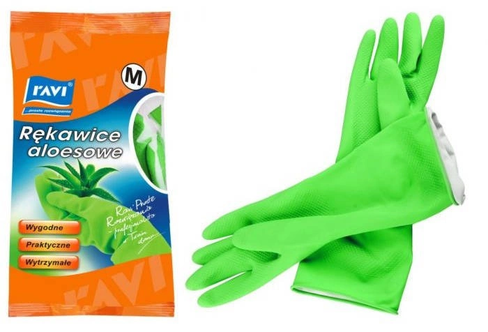 Rękawice przygotowane z lateksu z dodatkiem olejku aloesowego. Dzięki temu zyskują one dodatkowe właściwości pielęgnacyjne, a przy tym nie wydzielają nieprzyjemnego zapachu gumy.