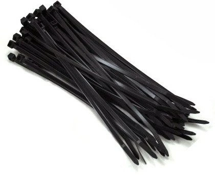 Opakowanie trwałych i solidnych opasek zaciskowych, wykonanych z mocnego tworzywa, przygotowanych w kolorze czarnym.