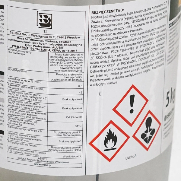 - Typ: Farba asfaltowo-aluminiowa modyfikowana kauczukiem syntetycznym