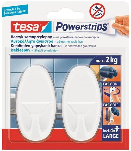 Haczyk samoprzylepny Tesa 2 sztuki biały owalny