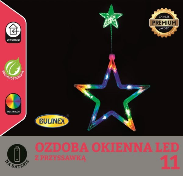 - Gwiazda 11 LED ozdoba okienna na baterie multikolor 20x7cm
